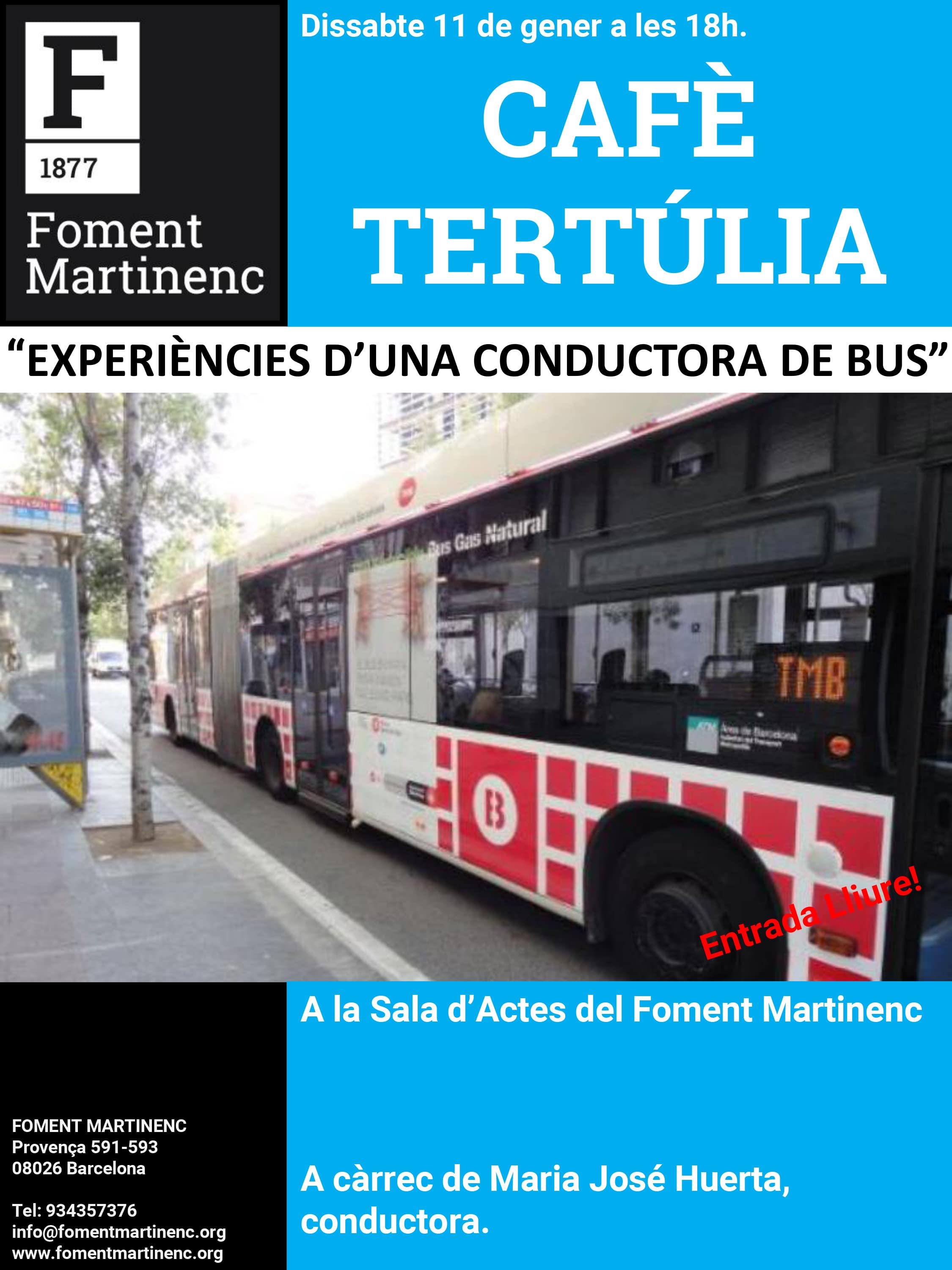 Serà a partir de les 18h a la Sala d’Actes del Foment Martinenc. Us hi esperem!